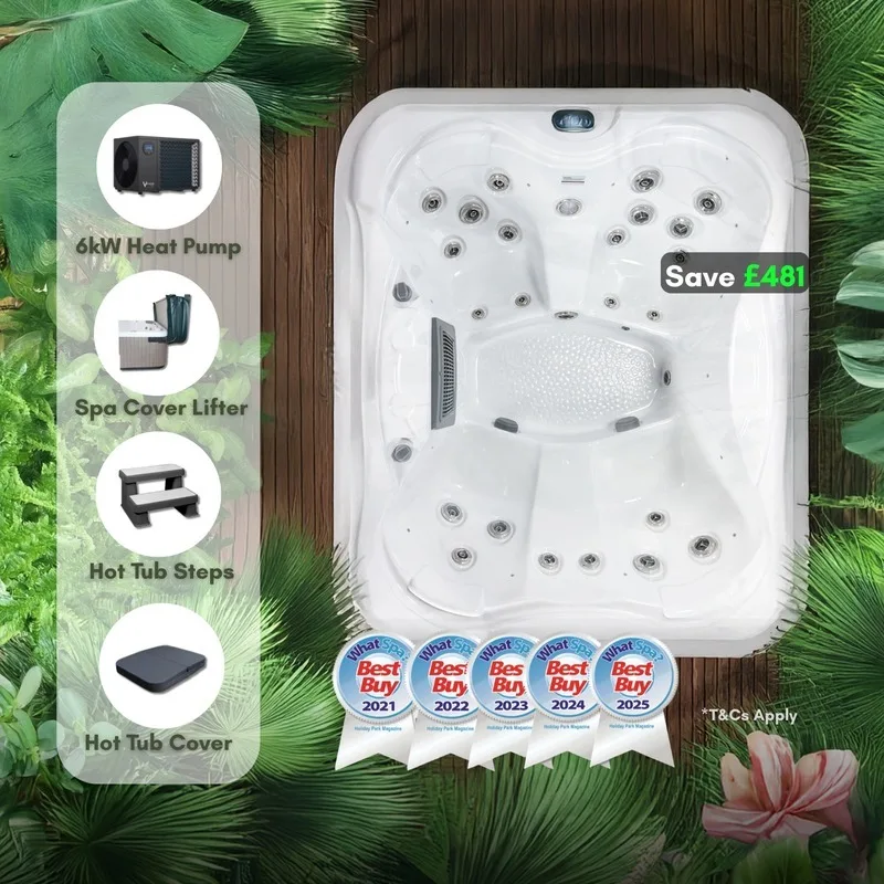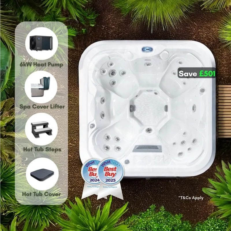 Save big with our limited-time offer on award-winning, HSG282-compliant hot tub packages designed specifically for the UK holiday sector. Each package includes a hot tub, cover, cover lifter, Vian Nexus Evo 6kW Heat Pump, and steps. Offer ends 30 November 2025. T&Cs apply.