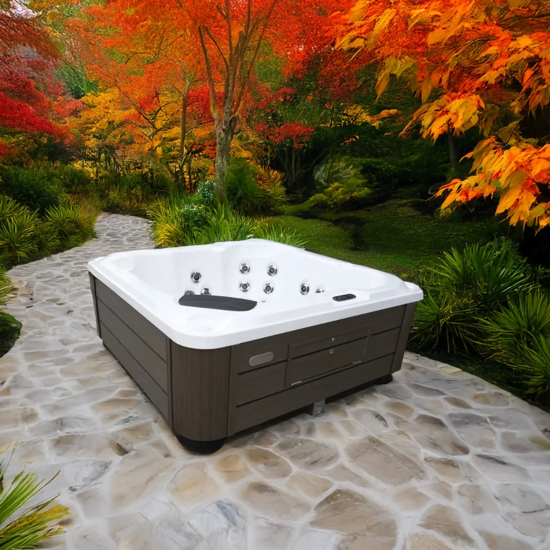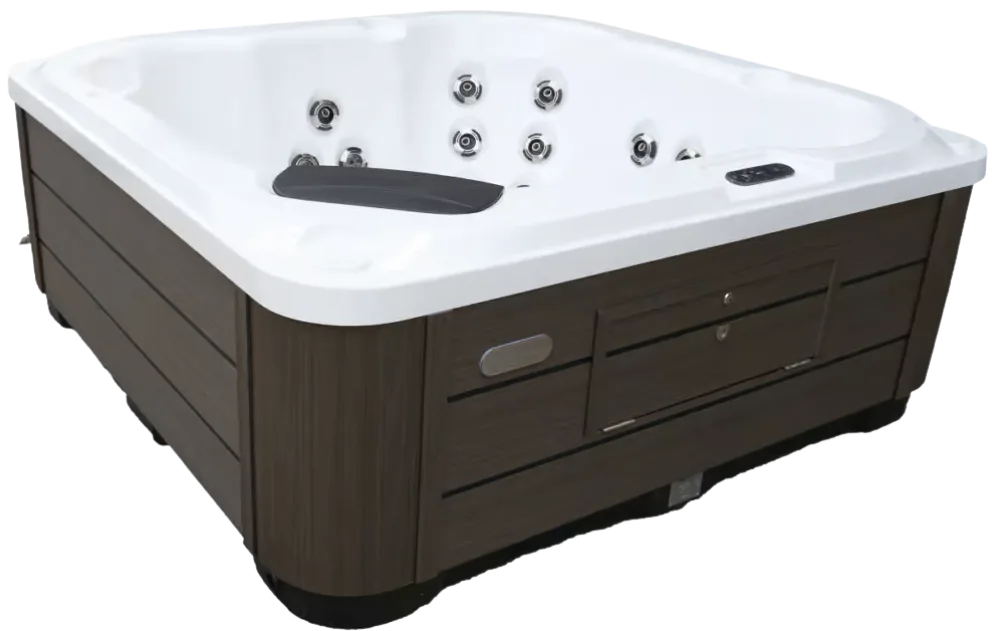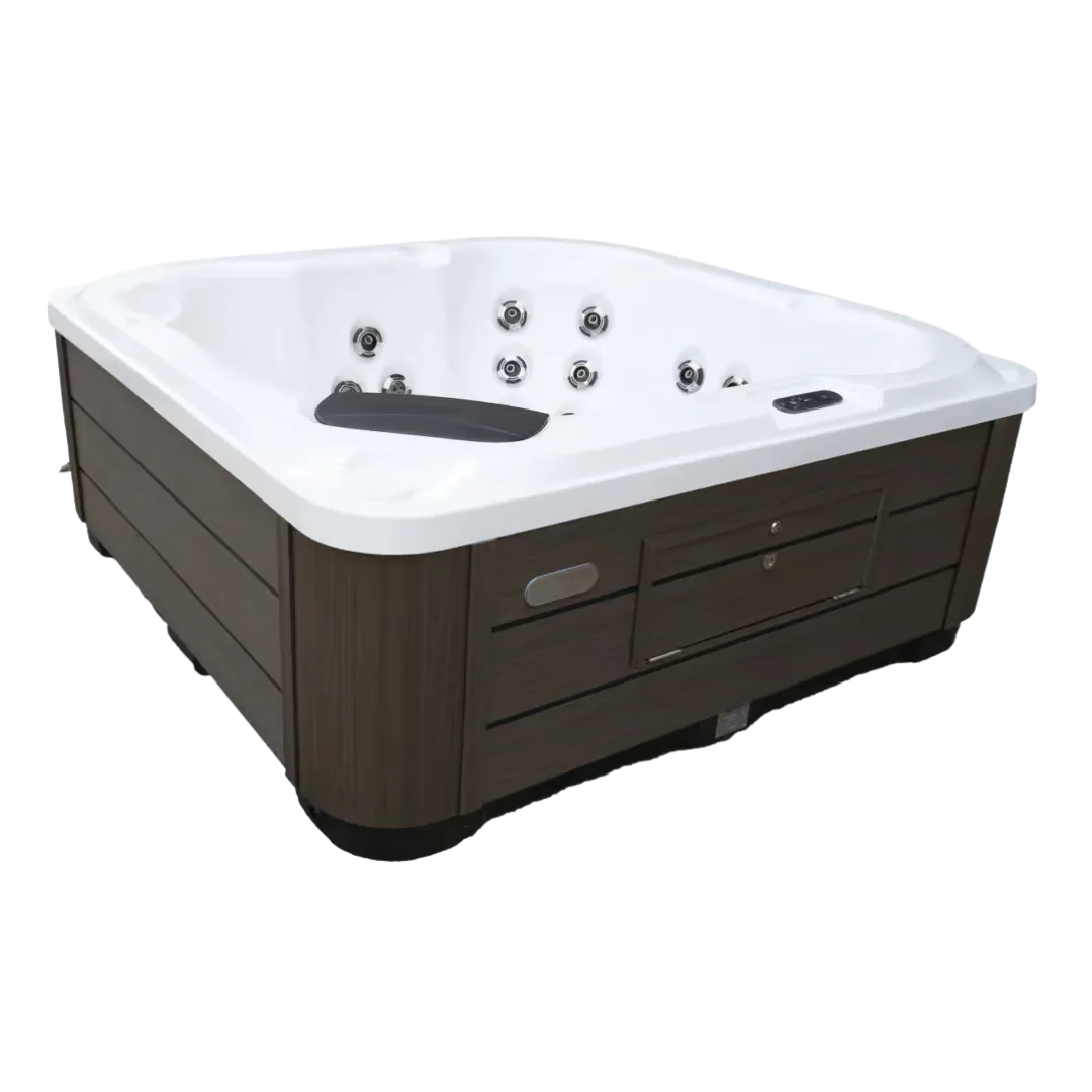 The Fiesta, designed in the UK for holiday parks, features 25 strategically positioned jets — 1 Extra Large, 1 Large, 21 Medium, and 2 Small — delivering a perfectly balanced hydrotherapy experience with powerful jets for deep muscle relief and smaller jets for soothing relaxation.