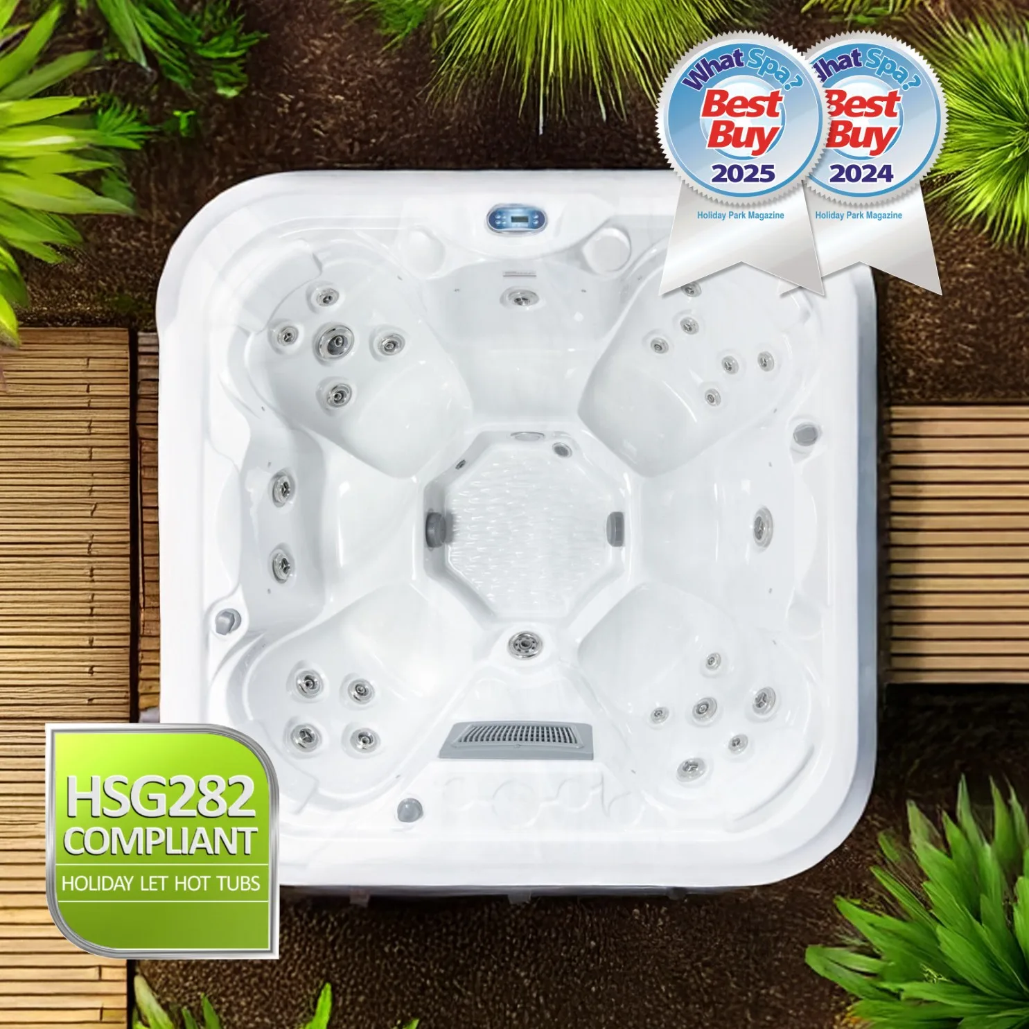 Setting new industry standards for energy efficiency and performance. Our proprietary R10 hot tub insulation has been recognised by industry experts WhatSpa and the UK Pool & Spa Awards for its outstanding performance, earning multiple awards for its innovative design, energy efficiency, and sustainability. Fully TUV certified and approved.